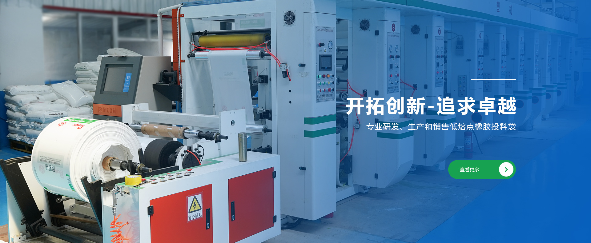 公司創(chuàng)建于1998年,是專業(yè)研發(fā)、生產(chǎn)和銷售低熔點(diǎn)橡膠投料袋、EVA閥口袋、LDPE多層閥口袋、EVA/LDPE低熔點(diǎn)膜、橡膠包裝膜、FFS重包裝袋、普通塑料包裝袋、牛皮紙閥口袋等產(chǎn)品的綜合包裝類企業(yè)
